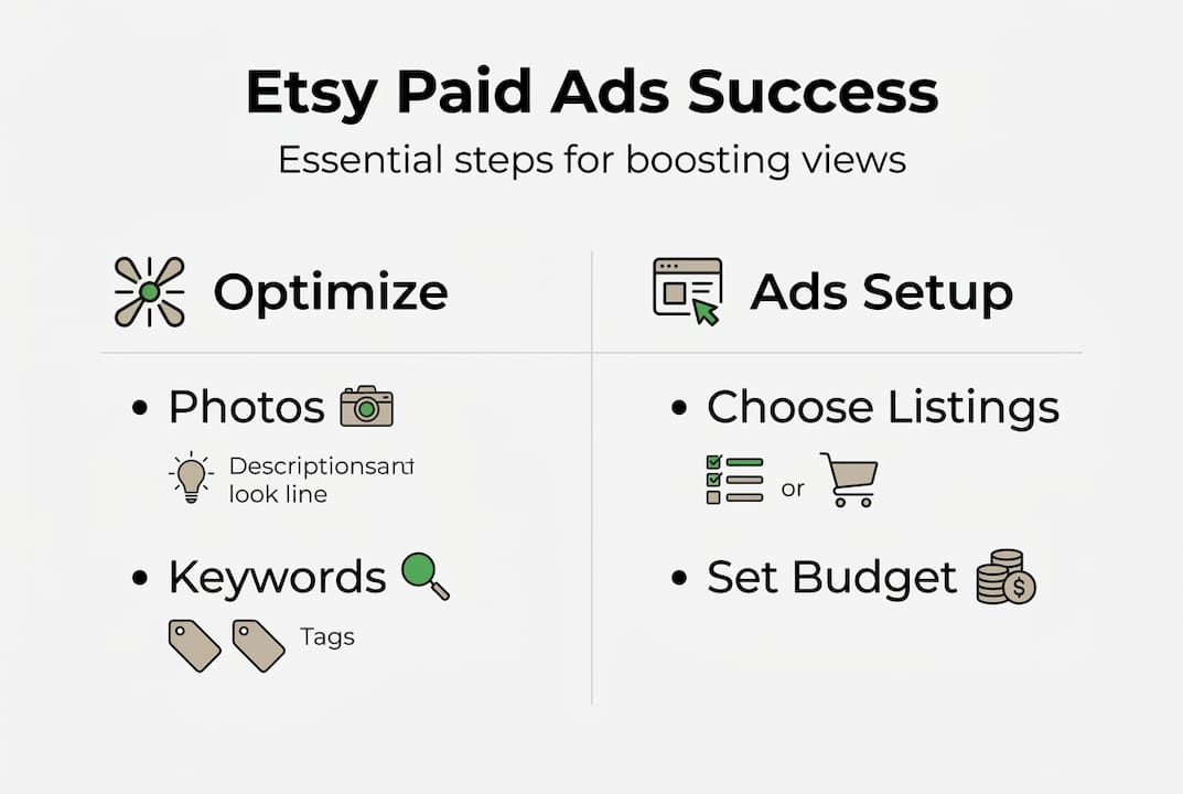 Learn how to boost Etsy shop views with paid ads. Covers listing optimization, budget strategy, troubleshooting, and data-driven scaling for Etsy sellers.